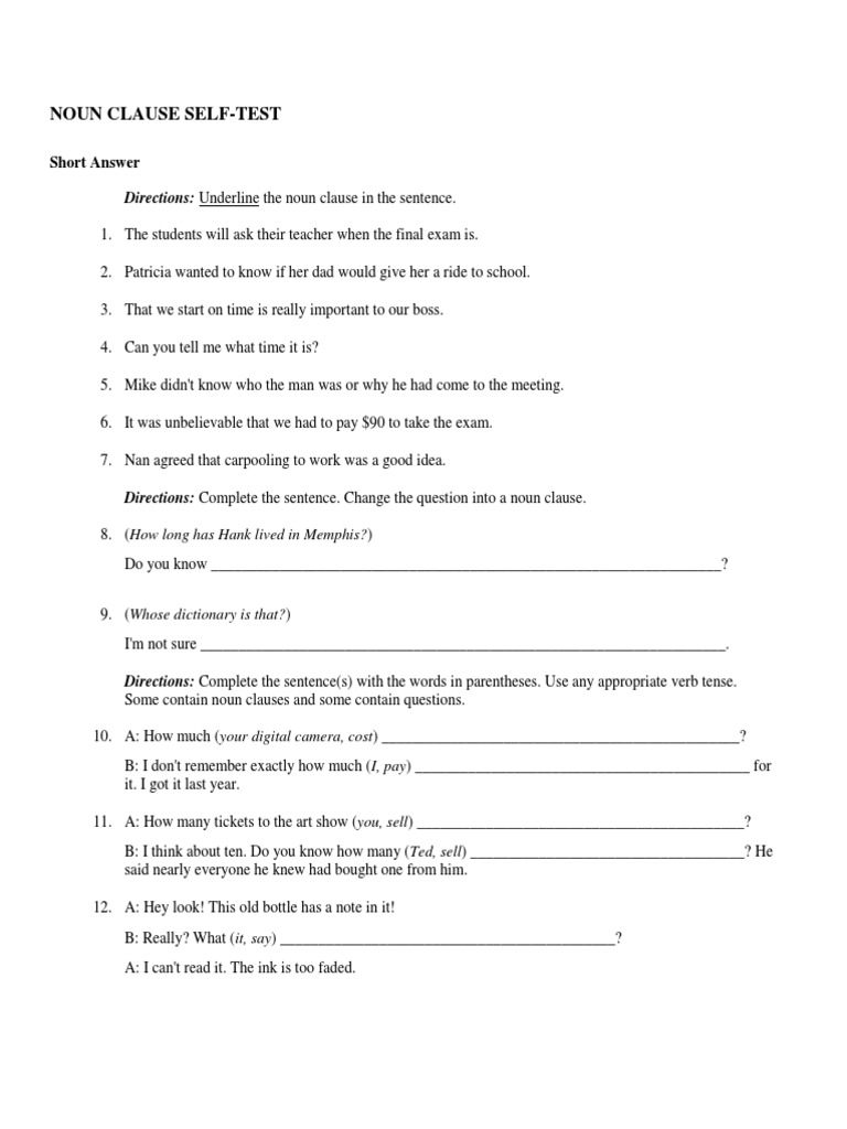 8th grade noun clause worksheet with answers. He wished to talk to his manager. We use who, what, which, whose, whoever, whatever, when, where, why, whether, how and that in noun clauses. I wondered what he was doing there. English for academic purposes (eap) grade/level:
